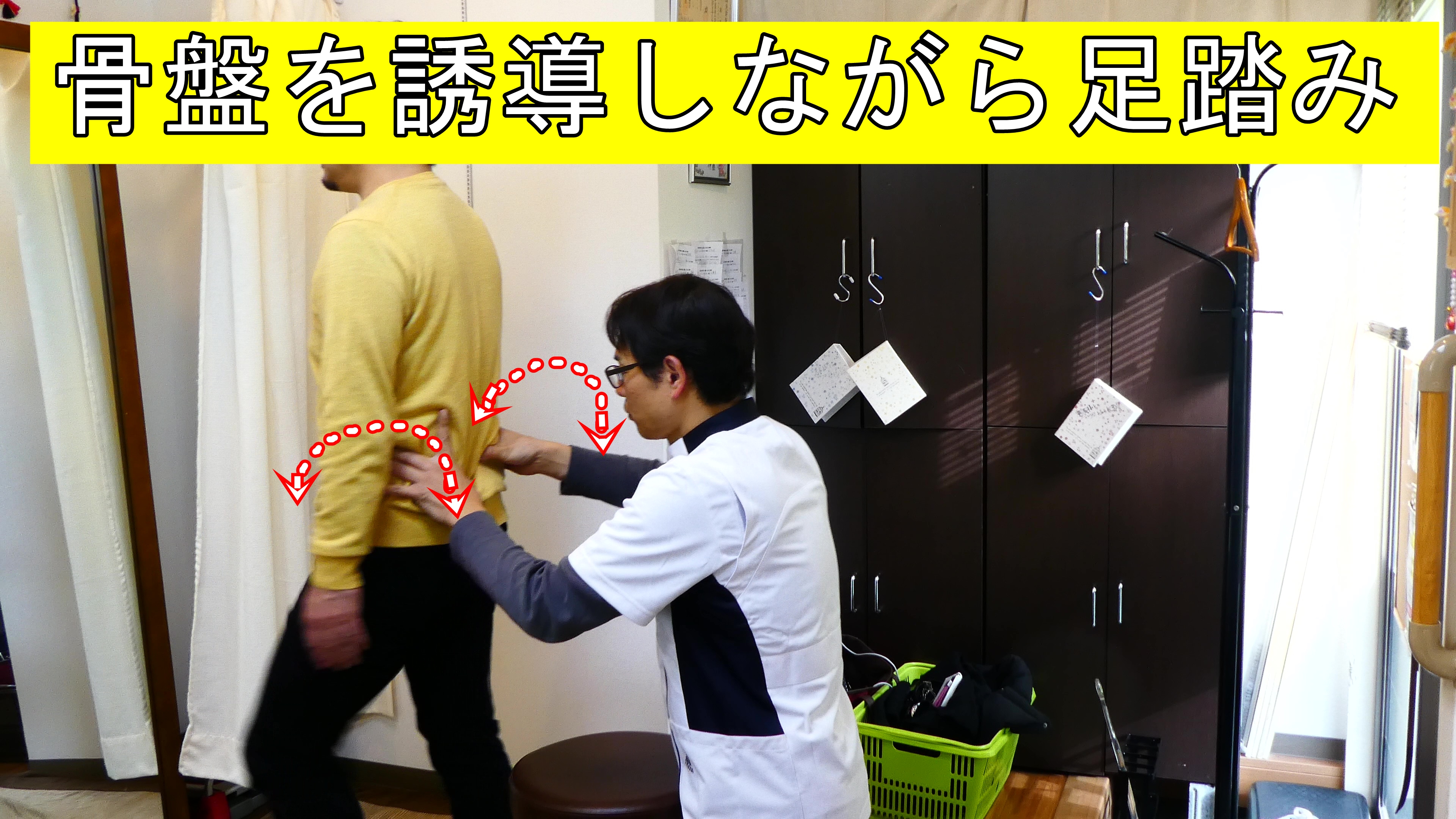 骨盤を誘導しながら足踏み活法ギックリ腰